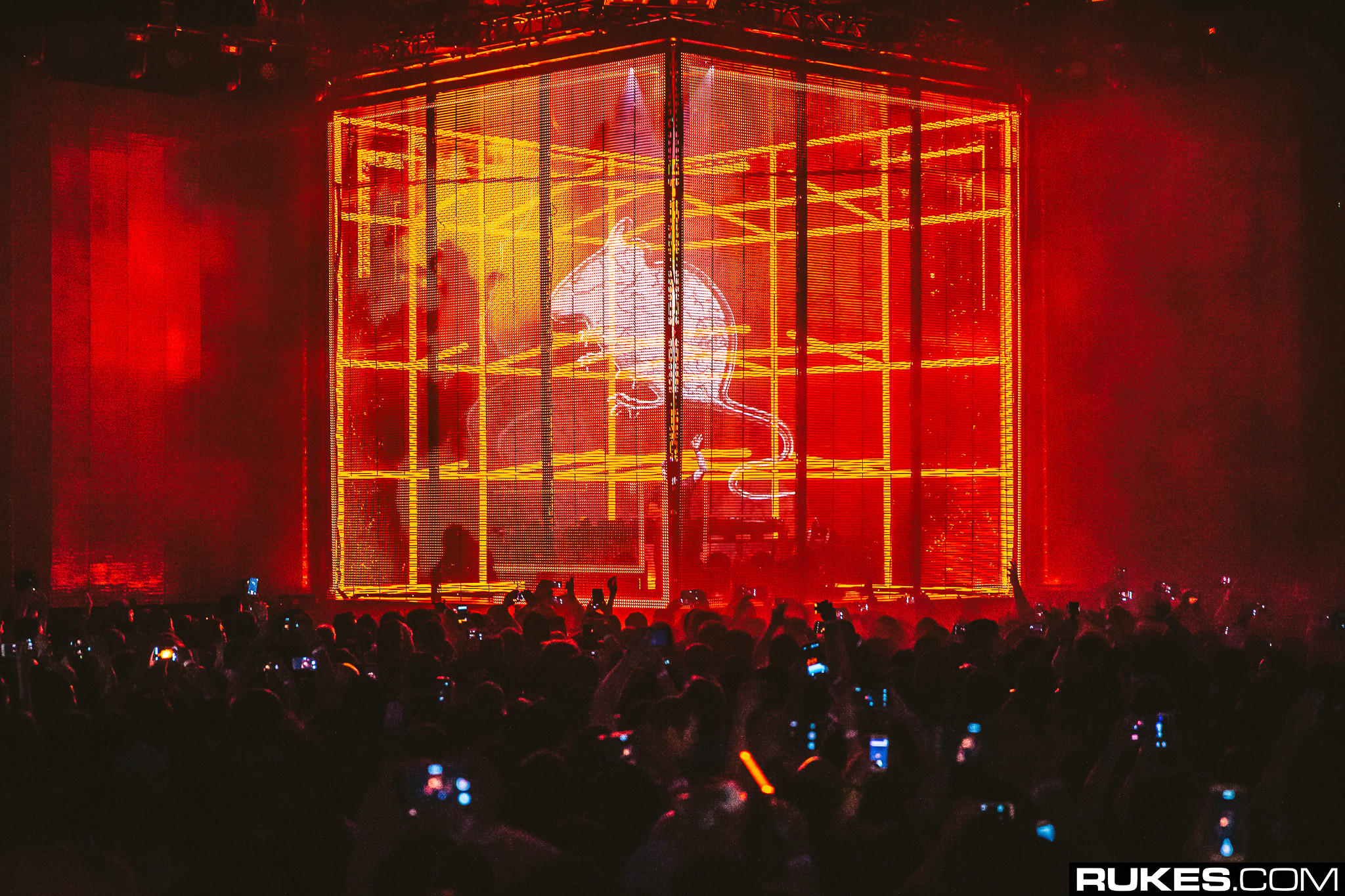 Surrounding Prydz on stage were more PRG LED screens, giving the shape of a cube to the audience. To add to the visual effects, Chapple created a fast-paced design using a rig which consisted of Clay Paky Sharpys (in NYC), Robe Pointes (in California), Mac Auras, Atomic Strobes, Blinders and six 30Watt RGB Lasers.