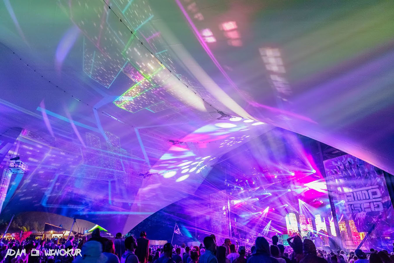 SCRANTON, Pennsylvania - August 2016 -- The curved overhang of the pavilion tent served as a visual canvas for the explosion of lighting effects, lasers, video and media server content that blasted forth and blew concertgoers’ minds at this year’s Camp Bisco. The visual canvas of swirling colors, cones of light and constantly moving content was due to the choice of fixtures as much as it was to the chosen lighting control system—Avolites’ Sapphire Touch.